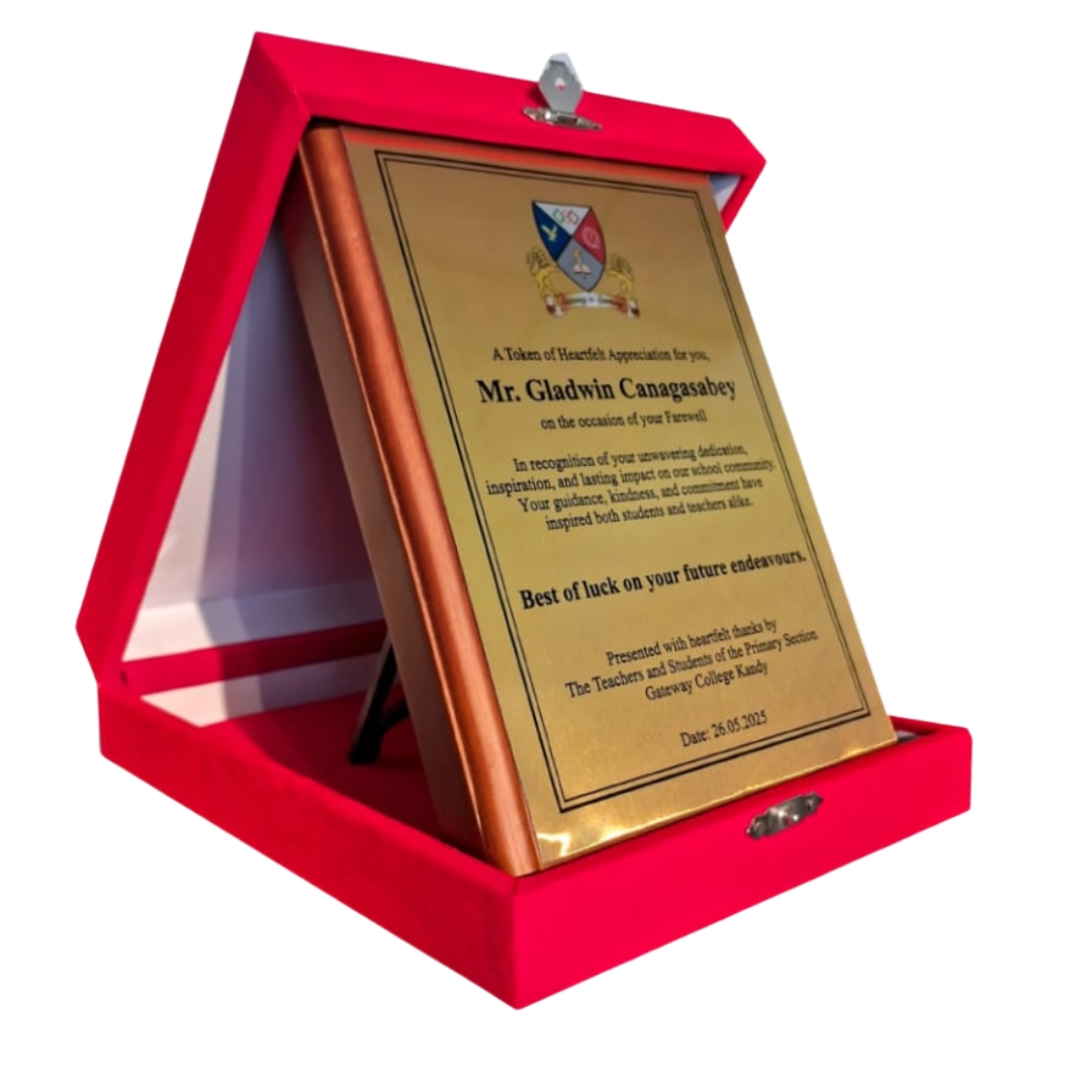 Celebrate excellence with the WW053 Teak Wood & Brass Craft Trophy. Designed with premium teak wood and a polished brass plate, this trophy delivers a timeless and sophisticated look. The sublimation finish allows for high-quality personalized engraving, making it ideal for corporate awards, retirement ceremonies, academic recognition, or special achievements. Packaged in a premium red velvet box, it stands out as a symbol of honor and appreciation.